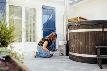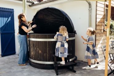 Profitez pleinement de votre séjour, imaginez un espace en plein air où le confort et la convivialité se rencontrent. Une terrasse spacieuse, baignée de lumière naturelle, abrite un coin détente. Au centre, un bain nordique, fumant doucement sous un ciel dégagé, promet des moments de relaxation intense, enveloppés par la chaleur apaisante de l’eau. Juste à côté, un salon de jardin, composé de huit assisses et deux tables de quatre personnes, invite à des conversations sans fin, un verre à la main, sous le doux crépitement d’une cheminée extérieure. Les flammes dansantes ajoutent une touche de magie, réchauffant l’atmosphère tout